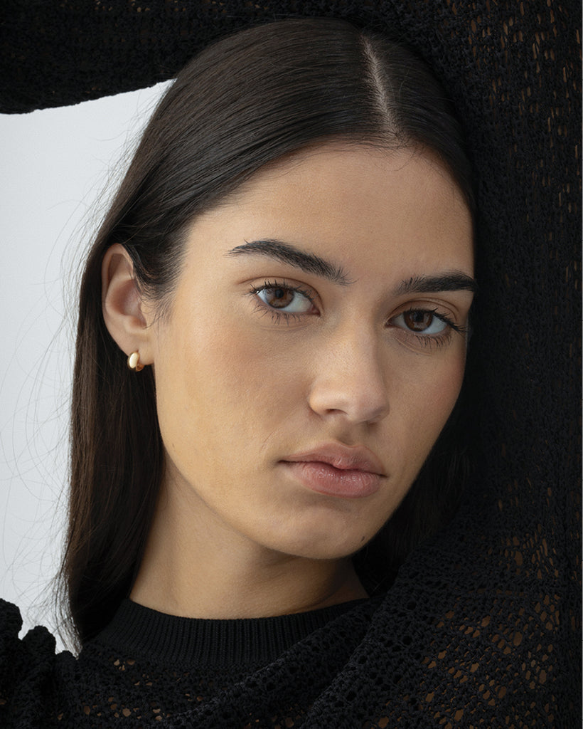 We work with 925 sterling silver and a durable layer of 18k gold, chosen for longevity, wearability, and ease on the skin. Each piece is designed to be lived in.